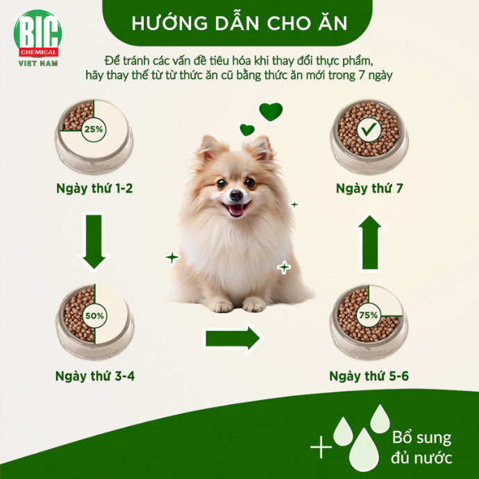 Lượng cho ăn có thể điều chỉnh dựa theo giống, trọng lượng và mức độ hoạt động của chó để duy trì cân nặng lý tưởng.